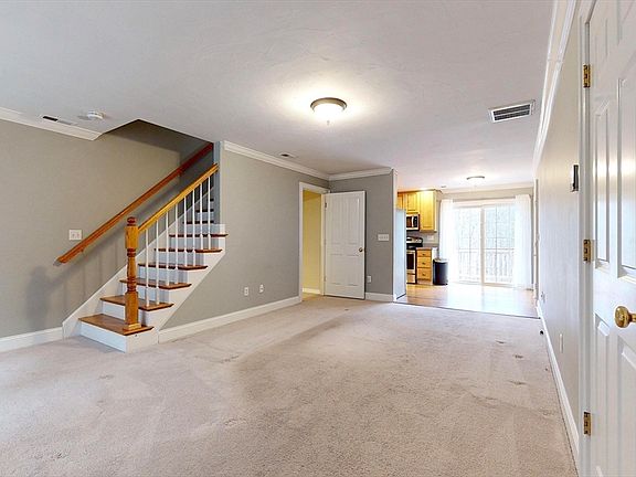 Great Opportunity to own a 3 bedroom home with garage, central air, finished basement in a cul de sac! Well maintained Half Duplex. First floor has a spacious eat in kitchen with lots of cabinets and a slider out to the back deck. Stove, Microwave and Refrigerator have all been replaced. The Deck is facing private treelined yard for privacy while relaxing and grilling on your deck. Half bath on first floor as well with a separate laundry area. Basement has storage area and a large finished room with its own heating zone and walkout slider makes it light and bright. Enjoy 3 sizable bedrooms with the primary having a cathedral ceiling and double closets. Garage can be used for more storage. Plenty of space within this unit for everyone. Commuter access to Route 146 and Mass Pike. Town Water and Town Sewer. Don't miss this affordable option to call home!