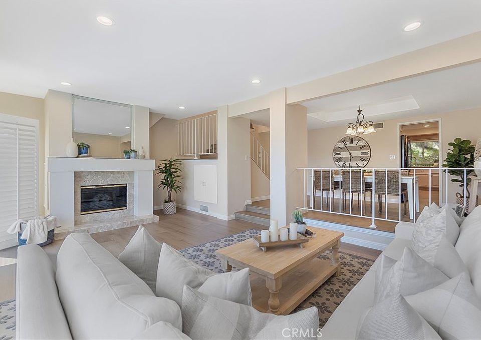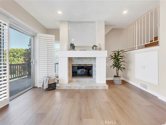 Located in the prestigious 24/7 guard-gated community of The Terraces and within the top-rated Palos Verdes Peninsula Unified School District, this beautifully updated end-unit townhome offers privacy, comfort, and sweeping views of the LA Basin, Downtown, and surrounding mountains from primary bedroom. Ideally positioned on a premium lot with open green space on two sides, the home enjoys East-West exposure, filling the interior with natural light and refreshing ocean breezes throughout the day. Featuring fresh interior paint, updated laminate flooring, and pre-wiring for a security system, the home is also certified for high-speed internet and TV connectivity. The inviting living room boasts a cozy fireplace, plantation shutters with custom accent lighting, and opens to a private balcony—perfect for relaxing or entertaining. A private patio tucked away from neighbors provides an ideal setting for enjoying meals outdoors in peace and seclusion. The bright kitchen includes a cheerful breakfast nook, refinished cabinetry, a new dishwasher, a 5-burner gas cooktop, a double oven with convection captivity, and ample storage for home chef. The spacious primary suite offers dual walk-in closets, room-darkening blinds, and an elegant ensuite bathroom with customized marble countertops, dual sinks, tile flooring, and a deep relaxing bathtub. Two additional bedrooms include ceiling fans, with one featuring a custom-built raised bunk bed and its own private balcony. The upstairs bathroom features customized marble countertops, tile flooring, and a generous storage space. The attached two-car garage has a freshly painted floor, extensive built-in cabinetry, double wardrobe closets, a newer automated garage door system, and a versatile bonus room ideal for a home office or study. Residents of The Terraces enjoy resort-style amenities, including five swimming pools, multiple spas, tennis courts, a children’s playground, a clubhouse, and beautifully maintained grounds. Blending modern updates with an unbeatable location and captivating views, this home presents a rare opportunity to own a truly special property in Palos Verdes.