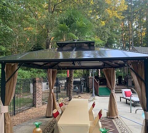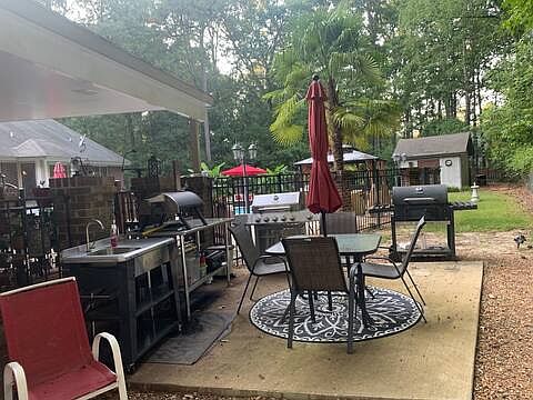 - Exterior features: Cable not included in rent, City trash pick up, Electricity not included in rent, Internet not included in rent, Outdoor Kitchen, Storage Shed, Theater, Volleyball Court, Water not included in rent, driveway for parking