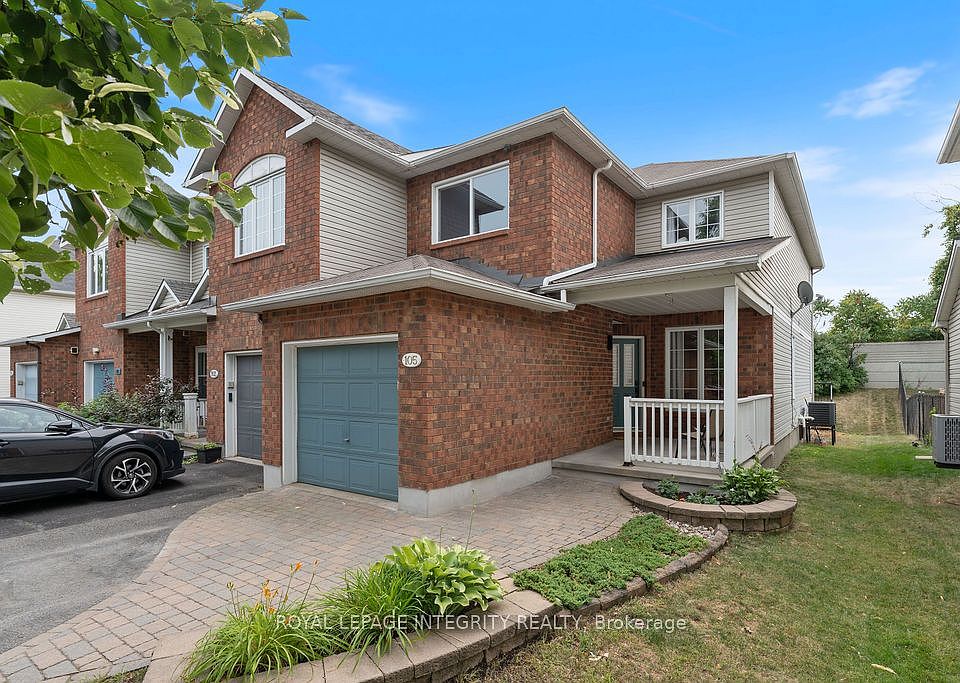 Open House Sunday, Sept.28th--2PM to 4PM Welcome to this spacious 3-bed, 4-bath end-unit townhouse, ideally located in Kanata's family-friendly 'Village Green' neighborhood and just steps from Ed Hollyer Park. A long driveway leads to a welcoming covered front porch. Inside, the main level offers an open-concept layout featuring a bright living room, dining area, and a cozy family room complete with a natural gas fireplace. The well-appointed galley kitchen provides ample cabinetry and counter space, with convenient access from the main foyer or its own eating area. Step out from the kitchen eating area through patio doors to a large, expansive composite deck (21'x16') w/natural gas hookup for your barbeque, ideal for outdoor entertaining. Upstairs, you'll find three generously sized bedrooms, including a 4-piece ensuite bathroom boasting a separate shower and a large soaker tub. The main 4-piece bathroom is conveniently located near the 2nd and 3rd bedrooms. Good closet space completes the second level. The fully finished lower level adds even more living space, with a large recreation room, a dedicated office, a 3-piece bathroom, a large laundry room, + storage areas! The single attached garage does provide inside access. Recent updates include: composite deck-2023; natural gas line on deck in backyard-2023; natural gas furnace-2017; central air 2015; shingles 2013;+++!