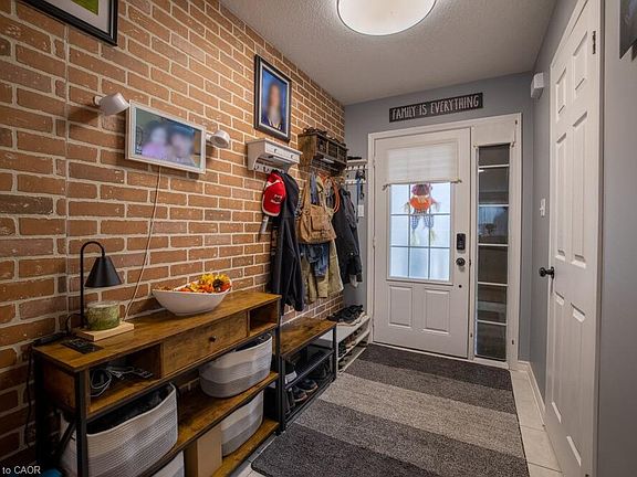 Discover 105 Bisset Avenue in Brantford. This freehold 2-storey townhouse offers 1,241 sq ft of primary living space with 3 bedrooms, 2.5 bathrooms, a single-car garage and a fully fenced and gated backyard complete with deck and hot tub. Well maintained by its original owners, this home is set in the sought-after, family-friendly Empire South community of vibrant West Brantford. The main level begins with a welcoming tiled foyer complete with a convenient 2-piece bathroom. The carpet-free design continues with laminate flooring throughout the open-concept layout, featuring a spacious living room and an eat-in kitchen. The kitchen offers two-tone cabinetry, extended counters, updated fixtures, and stainless steel appliances. Sliding doors open to the backyard, and there is also direct inside access to the garage for added convenience. Upstairs are three bedrooms, including a primary suite with a walk-in closet and a 3-piece ensuite bathroom. A second 4-piece bathroom and a linen closet complete the upper level. The unfinished basement serves as a blank canvas for your customization, whether for additional living space or as-is for extra storage. The fully fenced backyard includes a raised wooden deck (2024), a gazebo, and a hot tub for enjoying the outdoor space in any weather. A large shed provides extra storage, while a gated throughway offers convenient access in and out of the yard. Just steps from excellent schools, walking and biking trails, public transit, and a variety of nearby shopping and dining options, this home combines everyday convenience with a family-friendly setting.