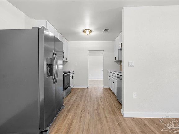 Discover this beautifully renovated 3-bedroom, 2-bathroom home conveniently located just 7-10 minutes from downtown Pensacola and 5 minutes from the front gate of NAS Pensacola. Situated on a large lot at the end of a quiet, dead-end street, this home offers privacy and space without the restrictions of an HOA. Step inside to find luxury vinyl plank flooring and cozy carpet throughout, complemented by a spacious living area and a dedicated dining space connected to the kitchen. The kitchen shines with stone countertops, new cabinets, and ample room to cook and entertain. Both bathrooms have been tastefully upgraded with modern tile showers for a polished finish. Outside, enjoy the fenced-in patio area—perfect for relaxing or entertaining. With its exceptional location and thoughtful updates, this home is an incredible find under $250,000. Don't miss your opportunity to make it yours!
