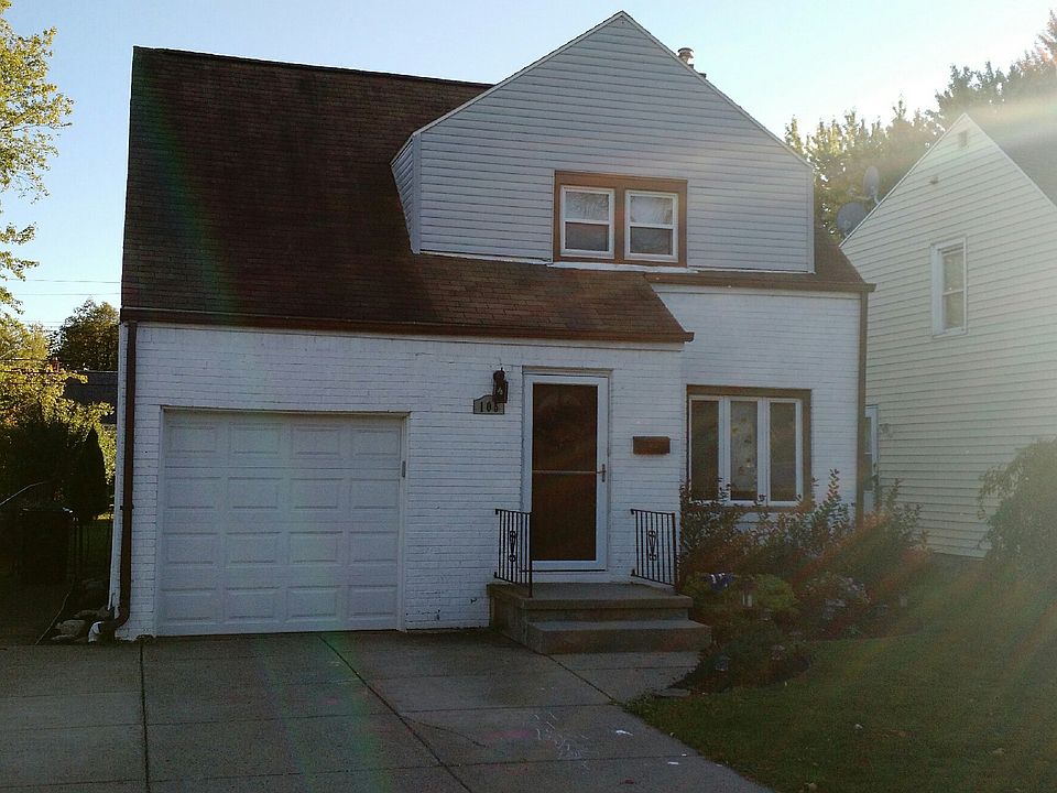 Welcome to 105 Brighton! Bright and open floor plan, skylights and sliding glass doors in vaulted ceiling living room, with a beautiful wood-burning fireplace. Nicely updated kitchen, gas stove and refrigerator included. 1st floor half bath, and a bonus half bath in basement. 3 large bedrooms, and all of house has newer vinyl replacement windows. Furnace and central A/C installed 2017. Enjoy the large fenced-in back yard! Convenient location to the 290 and many amenities. Washer and dryer also included.