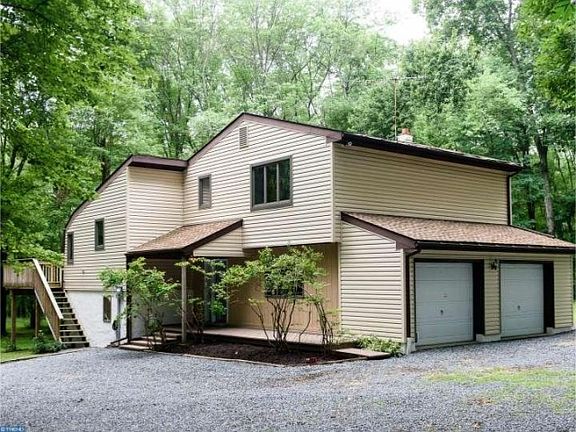 Situated off a quite country road you will find this 3 Bedroom, 2 Bath Retreat on 6.6 wooded acres in East Vincent Township. Inside this home you will find the tiled foyer entry and coat closet, access to the 2 car garage and the perfect set up for an in-law suite. It features kitchen, living room with door to lower level deck, full bath with shower stall, and bedroom with 2 closets. The main level features Kitchen with tile floor, double bowl sinks, Bosch dishwasher, smooth-top range, and pantry closet. There is also a breakfast area with a full wall of windows that allows you to take in the breathtaking scenery. From there you can access the newer deck with a staircase that leads you down to the driveway. Off of the Kitchen is the vaulted Living Room with hardwood floors and ceiling fan. The upper level includes a loft that overlooks the Living Room, 2 more bedrooms and a hall bath with shower/tub combination and linen closet. The bathroom can also be accessed from the Master Bedroom. New Carpet throughout the entire house. 2 car garage is heated and has air conditioning. In the garage you will find the laundry facilities and HVAC. New Roof in 2011 and New Siding in 2012. Built with 2' x 6' Construction. Also a spacious 12' x 32' shed for more storage. This property offers tons of privacy yet is conveniently located near Routes 23 & 100.