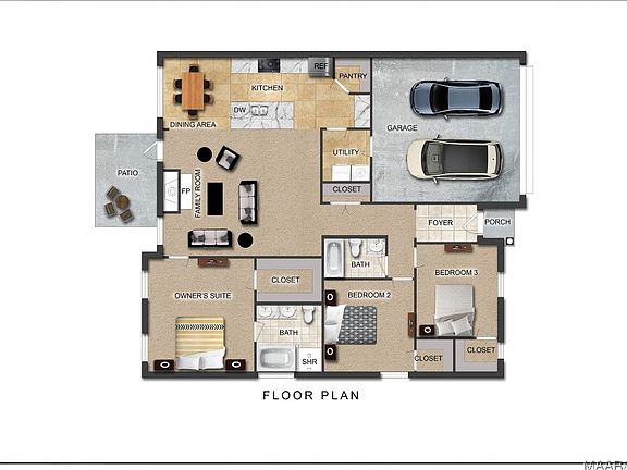 Presenting the Windsor floor plan. Step into this oasis and let the modern touches win you over. This newly built home has an open floor plan right off the formal foyer, that gives way to three bedrooms and two bathrooms, and a poured concrete patio that is all low maintenance so you can enjoy your time at home. Whether you spend your time alone, with family, or hosting larger gatherings, this bright eat in kitchen with a breakfast bar has everything you could want or need. The living room is comfortable sophistication with the woodburning fireplace clad in a wraparound mantle. The owner’s suite is designed to not only be beautiful and drenched in natural light that pours in from two large windows but has great flow with a walk-in closet, an ensuite with dual vanities and a separate tub and shower that makes it easy to use and share. This floor plan was built with your needs in mind; this includes the Heat Pump hot water heater, so you save money on your energy bill while never running out of hot water, and double pane Low-E glass windows and spray foam insulation that work to keep this home dry and cool in the summer and pleasant in the winter. Everything about this Windsor is made so that you truly can afford the American dream. 10' Ceiling in Family Room | Wood Burning Fireplace | Large Kitchen Island with Breakfast Bar | Dining Area & Breakfast Nook | Ceiling Fans in Master & Great Room | Separate Garden Tub & Shower in Master Bath | Double Vanities in Master | Large Walk-in Closets| Raised Vanities | Hard Tile in Fireplace & Bath | Attic Access from Inside Hall & Garage | Centrally Wired Command Center | Garage Door Openers | Spray Foam Insulation in All Exterior Walls & Roof Line | Energy Saving Heat Pump Hot Water Heater | Energy STAR Appliances & Fans. We have several more Floor Plans almost completed, come take a look.