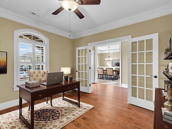 Welcome to 105 Bur Oak Dr - one of the few original homes from the previously planned European-style community. As you pull up to this beautiful home, you'll notice it's enchanting build and design. Stepping through the front door, you're greeted by beautiful hardwood floors that are throughout the first floor. On the right as you enter, you'll find the double doored den/office space. Across the way, you'll find the kitchen with stainless steel appliance, granite counter tops, stone backsplash, and tile floors. The kitchen is joined with a separate dining room, great for hosting family and friends. Next you'll see the living room complete with built-in bookshelves and beautiful stone fireplace with gas logs. A half bath sits just behind the living room followed by the spacious walk-in laundry room with cabinets, counter, closet, and sink. The primary bedroom is located across the hall and features a tray ceiling with recessed lights and en suite bathroom that includes a double vanity, spacious shower, separate tub, and large walk-in closet with plenty of shelving options. Heading upstairs, you'll find two more large bedrooms and a full bathroom. But the tour doesn't conclude hear. Next up is the garage, located at the back of the home providing additional privacy and security. The garage features epoxy flooring, adjustable shelves, and is even equipped with a tornado shelter! Outside, you'll find the lovely back patio and pergola with plenty of space for a grill and patio furniture for you to really enjoy the beautifully landscaped fenced yard. Additional features include in-ground sprinklers, gutter guards, HVACs less than 5 years old, community pool, and a beautiful location just 6 minutes from Lake Robinson and 15 minutes from downtown Greer. Schedule your showing today and come see it for yourself!