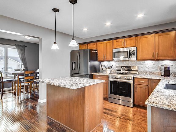 Contingency is buyer has a home to sell & inspections Loaded with features this 4 bedroom, 3 bath home has a finised basement w/ bar, egress window, fenced in yard, deck, & hot tub . The main level boasts a spacious entryway with 1/2 bath, flex room, custom hickory cabinets, pantry, eat in nook space, island in the kitchen & living room w/ picture window. The upstairs has 4 bedrooms, 2 full baths, walk in closet & a laundry room. You'll love the finished basement featuring an egress window, bar, & half bath. low maintenance living & so energy efficient too!