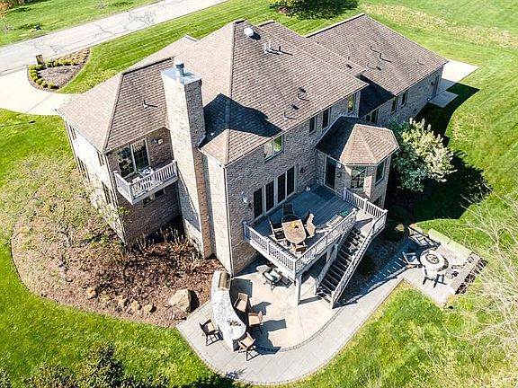 Pristine brick & stone provincial home situated on private 2 acre end of cul-de-sac lot.Minutes from the heart of Village.Professional landscaping & lighting compliment the home's architecture day & night.Grand entry leads to open concept floor plan bathed in daylight from Pella doors and windows.Wrought iron staircase to 3 bedrooms on upper level, each with en suite bathroom.Large owners suite with walkout balcony is complete with spa like bath.Chefs kitchen with connected family and dining room also office/den additional bedroom and laundry room complete main floor.Lower level apprx 1,450 SqFt of finished living area complete with wine cellar 1350 bottle capacity,in law suite, exercise room,dining area and fireplace.Walk out of the lower level to covered patio,grilling area with large custom cooktop, fire pit with seating.The home also boasts marble floors,solid walnut hardwood flooring,3 fireplaces, Viking & KitchenAid appliances,Security system,built in speaker systems 3 car garage