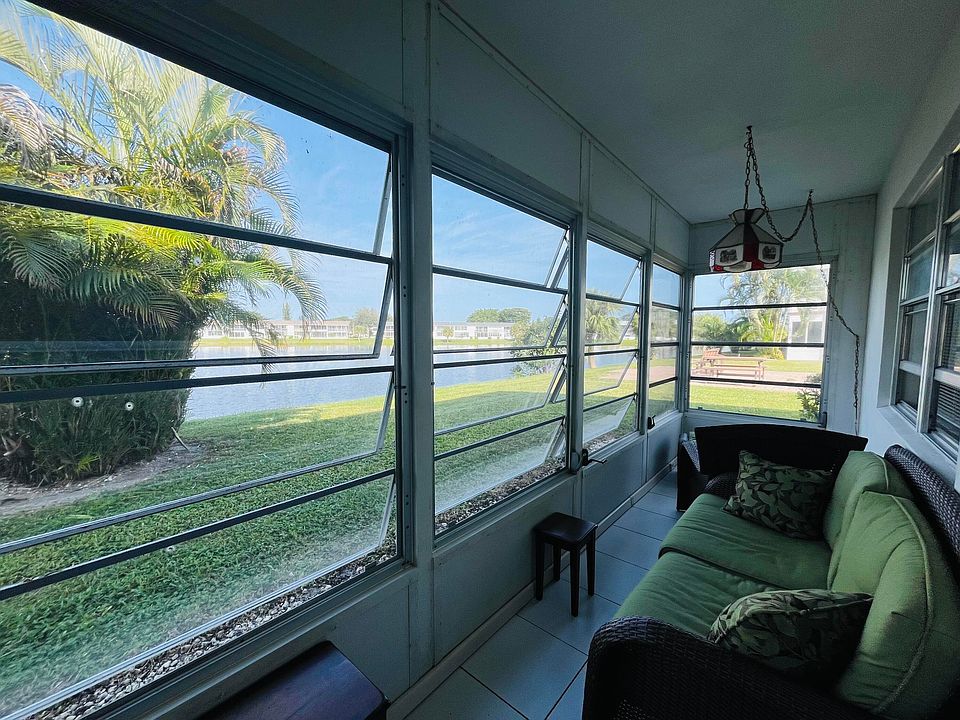 ENJOY! GROUND FLOOR CORNER WITH AMAZING WATER VIEWS. 2 BED 1 1/2 BATHUNIT RENTABLE FROM DAY OF PURCHASE.TASTEFULLY FURNISHED, UPDATED BATHROOMS TILE FLOOR THROUGHOUT CENTRAL AIR. ASSOCIATION HAS PRIVATE SITTING AREA. WELL MANAGED ASSOCIATION. VERY CLOSE TO THE KENT POOL.Roomy closets (one walk-in), laundry room, assigned parking spot plus visitor parking available; local bus for errands/shopping both within & outside the village. COME AND ENJOY RESORT STYLE LIVING IN THIS GATED COMMUNITY FOR ADULTS 55+. Clubhouse with theater, shows, movies, craft and card rooms, billiards, aerobics, yoga, and dance classes. GREAT LOCATION: close to shops, restaurants, PBI airport and beaches.
