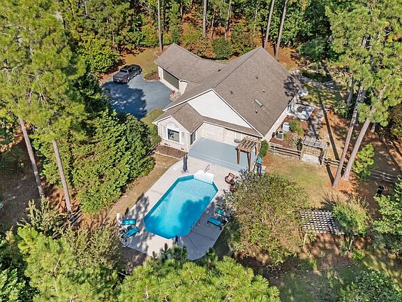 All brick, single level home with salt water swimming pool in amenity rich Seven Lakes West! Desirable location on oversized, quiet cul-de-sac lot near Johnson Pt Marina. with lovely mature landscaping, a beautiful Koi pond and fenced area surrounding pool with deck and outdoor shower! Enjoy the private views from the screened porch! Spacious master suite with sunroom, luxurious bathroom, large WIC. Wonderful layout offers lots of living space inside and out. This home has been beautifully updated with hickory hardwood floors throughout the main living areas and bedrooms, designer window treatments including plantation shutters, roman shades and motorized cellular shades, interior fully repainted, removal of popcorn ceilings, crown molding installed throughout, custom cabinetry in master bath and laundry. Garage has a heated and cooled workshop/storage room, epoxy floors, metal storage cabinets, laundry/gardening sink and overhead lighting. New LVP floors and refinished shower in guest bath. Added designer ceiling fans, recessed lighting, smoke/CO2 detectors, extra wall and floor outlets, lighted bathroom vanity mirrors, additional pond outdoor outlet. Pool has a new variable-speed, energy-efficient motor and new salt cell. New gas grill hookup!