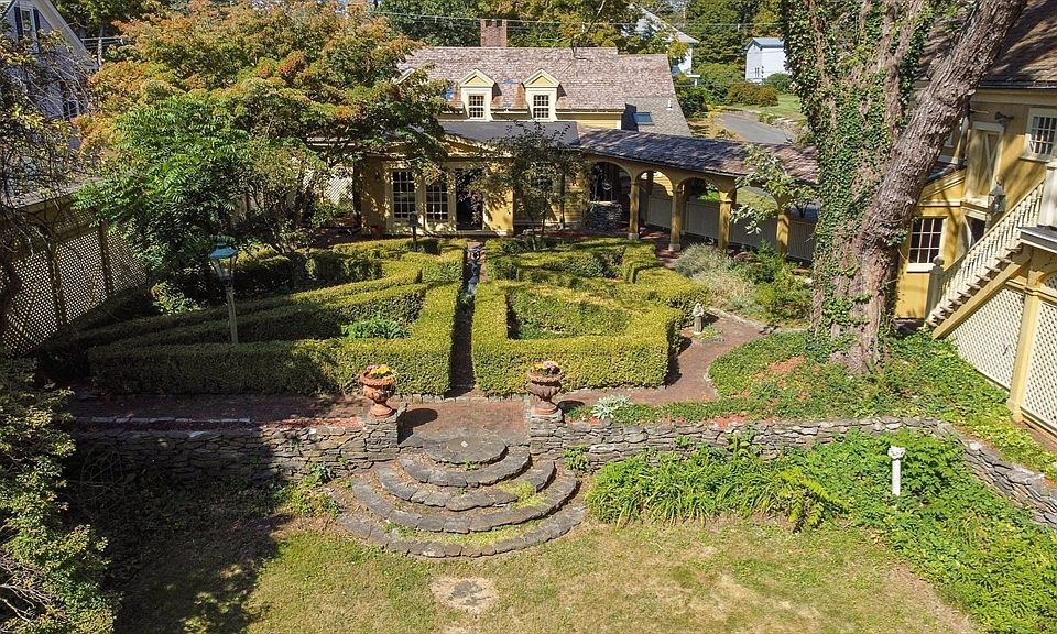 Incredible Antique Federal Style Colonial in the Church Street Historic District. This property is set on over an acre of land, featuring terraced gardens, brick walkways, stonewalls, patios, and it also directly abuts Grenville Park. The home boasts amazing architectural details both inside and out, with two fireplaces. It offers on one bedroom on the first floor and 3 bedrooms on the second floor, complemented by three full baths, a mud room, and a lovely foyer. Additionally, the property includes a carriage house with an artist's studio that has a balcony overlooking magnificent private hedged gardens. The carriage house can be converted into a separate living space. This is a truly a spectacular and rare home that I don't expect to be on the market for long.