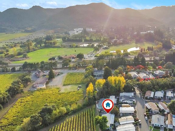 Live Well! Dramatic, picturesque vineyard views. A rare gem in a premier setting. The welcoming porch and deck are a favorite place to gather and experience Napa Valley Living at its finest. Truly, one of kind, this home is nestled in a cul-de-sac, and also has one of the largest yards, enjoy the outdoor space for gardening, and or relaxing. Additional features, 3 car carport, utility room with sink, jacuzzi tub, rose garden, new ceiling fans, new floor, newer roof, walk in closet, extra room for office, exercise, hobby or ?. The community pool, recreational facility are included. The town of Yountville is steps away, offering world class restaurants, wineries, art galleries, shopping.