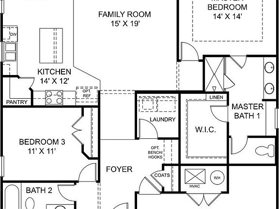 As you step through the inviting covered porch and into the home, you'll discover an expansive foyer that gracefully ushers you into an open and airy space encompassing the kitchen, family room, and breakfast room. Bedrooms 2 and 3 are thoughtfully tucked away in the front of the house, ensuring privacy and tranquility, while the primary suite enjoys a peaceful retreat in the opposite back corner of the first floor.