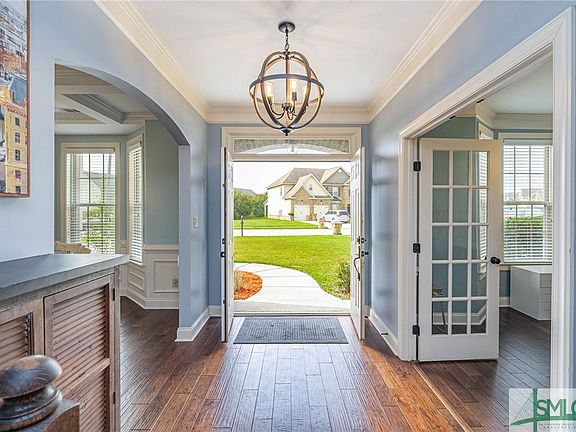 Experience luxury in this extensively upgraded home in Belmont Glen! Boasting a 5-bedroom, 4-bath layout, this residence offers an expansive interior with remarkable flexibility. The great room becomes a cozy haven anchored by a fireplace & complemented by custom shelving—perfect for unwinding. The gourmet kitchen is a chef's dream, featuring a double oven, generous island, and a beautiful pantry. Behind elegant French doors you will find the office, where custom cabinets & a spacious island create an inspiring workspace. The Master Suite is a regal retreat, complete with a sitting room and fireplace for the utmost relaxation. The ensuite bathroom boasts a second closet for ample storage. The 5th bedroom, currently used as a flex space, offers versatility whether as a guest room, additional bedroom, or playroom, catering to your family's needs. Step outside to your private backyard, where the covered porch overlooks the fenced-in backyard and lagoon, creating a perfect outdoor escape.