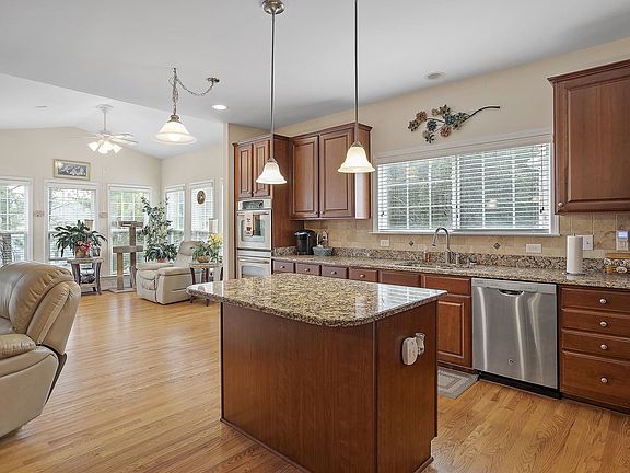 Immaculately maintained 4 Bedroom former model home in the gorgeous Olde Liberty Golf Community with Clubhouse and pool. Open floorplan, hardwoods throughout 1st floor, stairs and loft area. Kitchen Island is the center of this welcoming home with granite countertops, double oven, SS appliances, ceramic backsplash, pantry. Thermal windows give way to tons of natural light; sunroom; open expansive family rm w/FP; large bedrooms with tons of closet storage. Spacious Deck off of sunroom, Fenced backyard with cozy firepit for all your outdoor entertaining and smores.