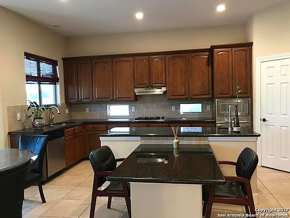 This beautiful house is in a Gated Community, and features an open concept kitchen and living room. Master bedroom downstairs. Granite in kitchen and bathrooms. Large bedroom upstairs can be used for game room, media room. Big backyard with barbecue pit and half bath outside, great for entertaining. All measurements are approximate.