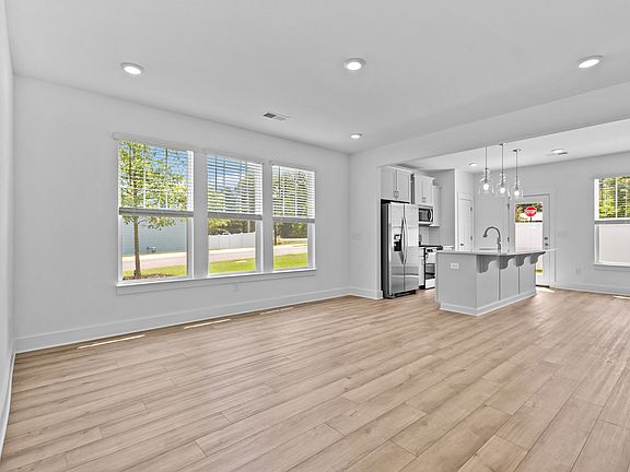 Upon entering the spacious foyer and continuing down the hall, you will fall in love with the open concept living! Luxury vinyl plank flooring throughout the entire downstairs. Large family room allows so much natural light with 3 large windows. Kitchen is beautiful equipped with an oversized island featuring white Quartz countertops and under-mount sink. Pendant lighting over the island illuminates beautiful gray cabinetry, tiled backsplash, and stainless-steel appliances including fridge. The patio right off the kitchen offers an intimate backyard area. Up the oak staircase you will find a large primary suite that features a well appointed walk in closet and an ensuite bathroom with double vanities and beautiful tiled shower with built in seat. Two more spacious bedrooms, full bath, and laundry area complete the second floor. Enjoy the convenience of a one car garage and double-parking pad driveway. This townhome is situated right between Fountain Inn and Simpsonville offering all conveniences such as dining, shopping, and recreation. Zoned for Fountain Inn High School. Washer/Dryer installed. Yard maintenance is included. Don't miss the opportunity to live in this amazing home!