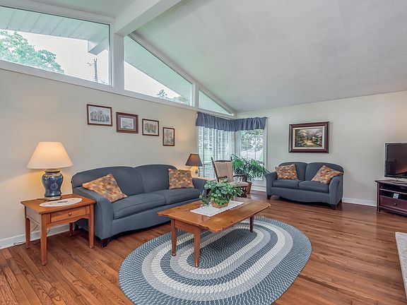 Features include hardwood flooring, cathedral ceiling, stone fireplace, new flooring in bathrooms, new carpet in bedrooms large back deck with new boards and railing, fenced yard, swimming pool, hot tub, 2019 sump pump, and much more! Expansive kitchen has tile flooring, plenty of cabinet and counter space, and breakfast nook. Cathedral ceiling in the living room which is open to the dining area. Owners suite is 13x12 with sliding door to the back deck and the master bath has a walk in shower. Two more bedrooms and a full bathroom finish the main level. The garden level could be fourth bedroom, Mother-In-Law suite or create income as an Airbnb. Features include rec-room, full bath, kitchenette, and separate entrance. The private back yard has a hot tub and an in ground pool with a solar