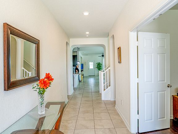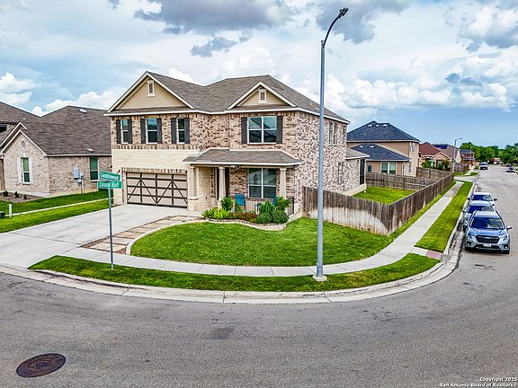 Welcome to this beautifully designed two-story home built in 2018, offering a spacious and modern open floor plan with five bedrooms, an office, two full bathrooms, and one-half bathroom. The home also includes a large upstairs media or family room, perfect for entertaining or relaxing with loved ones. Step inside to find an inviting layout with high ceilings, abundant natural light, and a seamless flow between the living, dining, and kitchen areas. The kitchen features modern cabinetry, stainless steel appliances, and an oversized island with bar seating, creating the perfect space for cooking and gathering. The primary suite is located on the main level and offers privacy and comfort with a large walk-in closet and a spa inspired bathroom that includes a double vanity, soaking tub, and separate shower. The additional bedrooms are generously sized and provide plenty of space for family or guests. Enjoy outdoor living in the covered back patio with full screen enclosure, ideal for evening relaxation or weekend barbecues. The backyard is easy to maintain and perfect for family gatherings or quiet moments of peace. This home combines comfort, functionality, and modern elegance, including energy efficient features, updated flooring, and smart home technology. Located just minutes from Randolph Air Force Base, Interstate 35, and Loop 1604, this property offers convenient access to major highways. It is only five minutes from Loop 410, twenty-five minutes from the San Antonio International Airport, and thirty-five minutes from downtown San Antonio. Experience the perfect balance of modern living, convenient location, and community charm in Universal City.