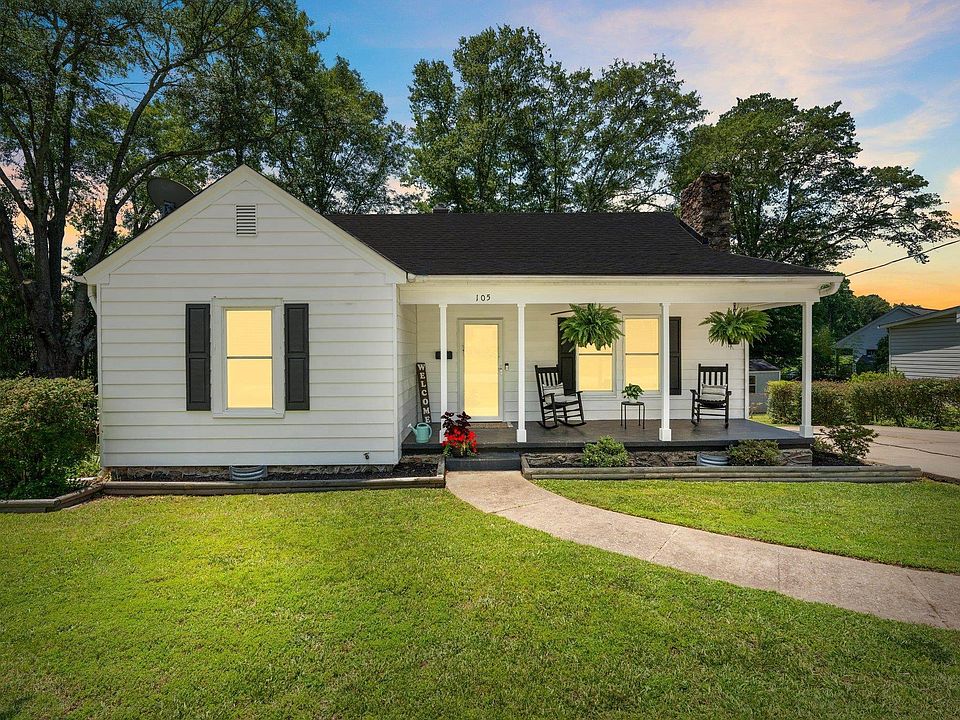 **Multiple Offers** Welcome to iconic Southern charm in the heart of downtown Greer. Be wowed by curb appeal as this bungalow sits on pristine grounds and welcomes you with a rocking chair front porch. Step inside to be greeted by gleaming original hardwood floors as you enter the spacious living room with fireplace and tons of natural light. This home lives BIG with a great floorplan that provides such comfort and taste with soft colors and terrific updating. Dining area off the living room flows effortlessly into the completely remodeled kitchen appointed with classic white cabinetry, subway tile backsplash, and black stainless appliances. Custom live wood island bar top makes a great breakfast area and offers tons of creative storage. Full service laundry room is ideally positioned at the rear of the home off the kitchen with additional cabinet space, large folding area, and electronics charging station. Let the good times roll as you step outside to a beautiful deck overlooking the designed fit pit perfect for entertaining. Back inside, enjoy the privacy of the primary bedroom at the rear of the home complete with functional built-ins and closet adjacent to the huge bathroom with standup shower/tub combination and designer vanity. 2nd bedroom offers the same dimensions and makes this house comfortable for 1st-time buyers, rental investors, or those looking to downsize to single story living with the convenience of being within walking distance to vibrant downtown Greer. I-85, GSP, and Wade Hampton are also just minutes away. Home was completely remodeled just a few years ago and provides a high degree of confidence of worry-free ownership. Lovingly cared for by current sellers and ready for you to call home. Priced to sell, so don't let this gem pass you by!
