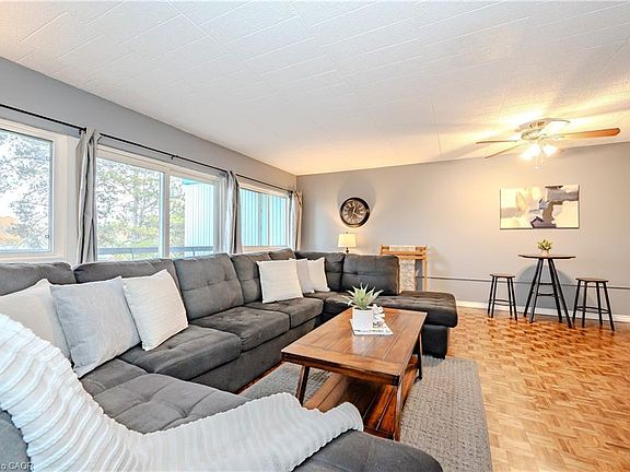 Welcome to Unit #511 at 105 Conroy Crescent in Guelph, a charming and well-kept condominium offering 823 square feet of comfortable living space. Nestled within a friendly, vibrant community, this unit is ideal for those seeking both convenience and tranquility. Inside, you'll find warm hardwood flooring throughout, creating a cozy and inviting ambiance all year round. The kitchen is thoughtfully equipped with stainless steel appliances, including a built-in microwave hood fan, dishwasher, refrigerator, and a double oven/stove perfect for everyday cooking or entertaining guests. Step out onto your private balcony to enjoy a quiet moment or unwind at the end of the day. The building also provides convenient access to laundry facilities and plenty of parking. Monthly condo fees include essential services and maintenance, ensuring stress-free living. Located in a desirable neighbourhood, this home is surrounded by lush green spaces, scenic trails, shopping, schools, and excellent public transit options. Whether you're a first-time homebuyer or looking to downsize, this welcoming unit offers a wonderful opportunity to enjoy both nature and city amenities. Don't miss your chance to make it yours!