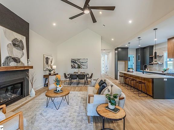 Back on market at no fault of the seller. Nestled in a prime location, this 3-bedroom, 2.5-bathroom contemporary home is an absolute gem, offering the perfect blend of modern luxury and convenience. Situated just minutes from the heart of downtown Greenville, the Swamp Rabbit Trail, and the beloved Unity Park, this home provides easy access to some of the area's most sought-after attractions, dining, and entertainment. As you step inside, you’ll be greeted by a breathtaking chef-inspired kitchen that combines beauty and function. Custom white oak and walnut cabinetry create an elegant and warm atmosphere, while the oversized quartz island serves as a stunning focal point. The kitchen is equipped with a stainless steel 36-inch gas range, perfect for the home cook or culinary enthusiast. A large walk-in pantry ensures you have plenty of space for storage, making this kitchen as practical as it is beautiful. The living room offers a welcoming, open-concept space with large windows that fill the area with natural light. A sleek, stucco fireplace creates a cozy focal point, while the adjacent wet bar is perfect for entertaining guests or enjoying a quiet evening. The thoughtful layout makes this home ideal for both intimate gatherings and large celebrations. The luxurious master suite is located on the main floor for added convenience. The spa-like master bathroom is complete with a large garden tub, a beautifully tiled walk-in shower, and a dual vanity with plenty of counter space and custom cabinetry. The spacious walk-in closet is a dream, offering ample storage for your wardrobe and accessories. Upstairs, two generously sized bedrooms share a well-appointed Jack-and-Jill bathroom, making it an ideal setup for family or guests. The loft area provides additional living space, perfect for a home office, playroom, or media room—offering versatility to suit your needs. Step outside into the large backyard, where a huge covered porch invites you to relax or entertain. The wood-burning fireplace adds a touch of warmth and charm to this outdoor living area, making it the perfect spot to unwind or enjoy the outdoors year-round. Schedule a private tour and come see for yourself the attention to the detail that has been put into this home!