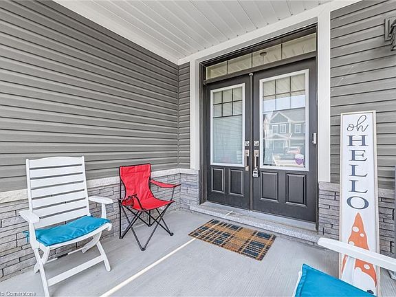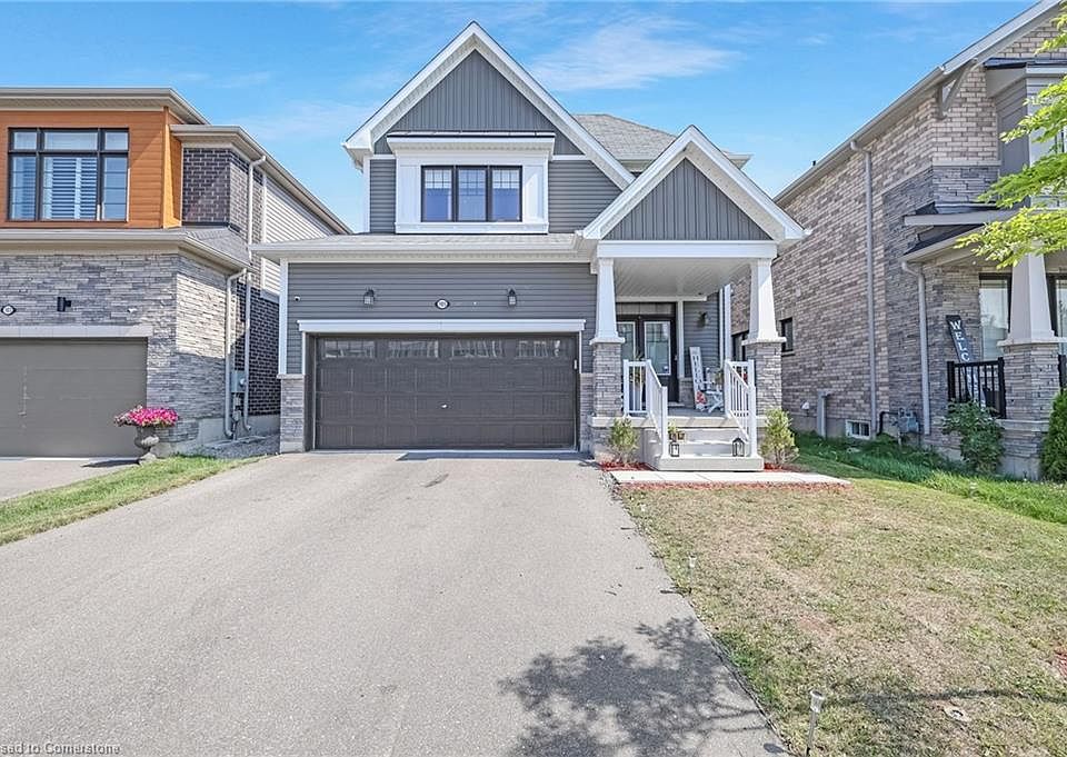 Welcome to 105 David Street! This beautifully designed, move-in ready 2-storey detached home is perfectly situated in a desirable, family-friendly neighbourhood in Hagersville. Featuring a charming covered front porch, double garage, and stylish modern finishes throughout, this property offers the perfect blend of comfort and elegance. Step inside to a bright, welcoming foyer with mirrored closet doors and an open, airy layout. An elegant staircase with wrought iron spindles leads to the upper level, while the main floor showcases gleaming hardwood flooring, spacious living areas, and abundant natural light. The chef-inspired kitchen boasts quality cabinetry, modern appliances, ample counter space, and a large island—ideal for everyday cooking or hosting gatherings. The adjoining living room features a custom built-in wall unit with a cozy fireplace, while the dining area offers a seamless walkout to the backyard—creating the perfect space for entertaining. Upstairs, you'll find generous-sized bedrooms, including a primary retreat with a private ensuite and walk-in closet. The finished basement expands your living space with a large recreation room, a 2-piece bath (easily convertible to a 3-piece), and plenty of storage. Additional highlights include a double-door entry, low-maintenance landscaped front garden, and a private driveway with parking for multiple vehicles. Conveniently located close to schools, parks, shops, and all local amenities, with easy access to major routes—this home is ideal for families and professionals alike.