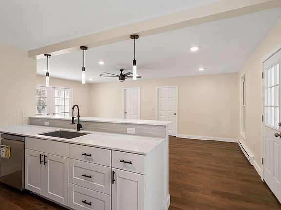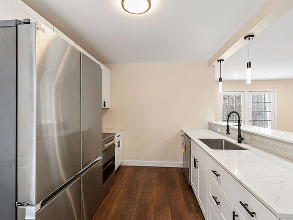 Updated Kitchen: Fully renovated kitchen with sleek finishes, quartz countertops, black fixtures, and a modern bar seating area perfect for entertaining or everyday meals.