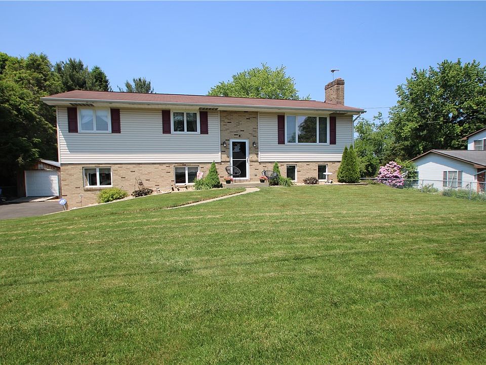 Fantastic split in the heart of Connoquenessing! Located on a quiet, dead end street, this home has a new 16 x 24 ft deck with a metal gazebo, a 12 x 28 ft garage/storage building with one garage door on either end of the building, new shutters on the exterior, and newer 3/4" Brazilian Cherry hardwood floors in LR, DR & KIT! The new owners have also replaced the carpeting in two of the bedrooms. The Primary Suite features a full bath, and the main bath on the main floor is incredibly spacious and boasts ceramic tile flooring. The lower level houses a family room that has a gas log fireplace and a half bath. The outdoor living space can't be beat with the large, fenced-in yard and the new deck. The yard is private and surrounded by a tree row, insulating you in a secluded paradise! Close to Cranberry Twp and Routes to Pittsburgh, you get the best of both worlds here.