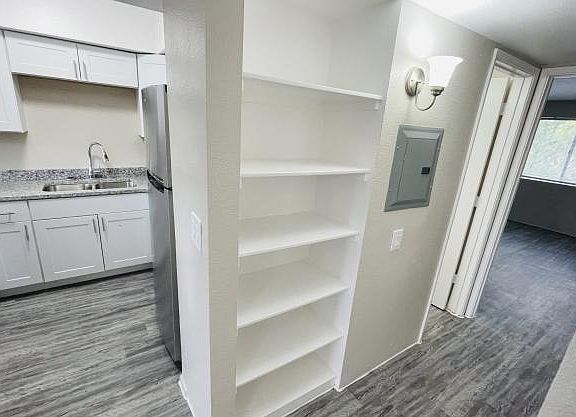 Newly remodeled end-unit apartments, nestled in a small quaint 5 unit community!! These 2nd story apartments boasts brand new stainless steel appliances, countertops and modern white cabinets with coordinating hardware! Gray plank flooring meets up with contemporary light gray walls and pristine white trim! Spacious bedroom with an entire wall of closet storage! Large windows keep things naturally bright! Remote controlled AC units in each room for maximum comfort! New bathroom vanity with glazed white sink/vanity top and modern light fixture. Shower to be recoated white. Off Street Parking available. This community is located just south of Downtown Tucson, close to U of A, freeways and other local shopping! A park equipped with playground equipment and an area for dogs just a short walk from home! Call this beautiful and quaint West University community your home today!! MOVE IN SPECIAL!! LIMITED TIME We are offering a $250 rent reduction on the first month!! Equal Housing Opportunity. REDI Rentals www azredirentals.com