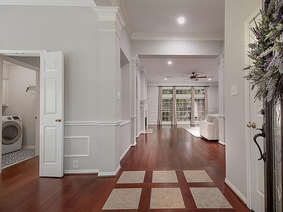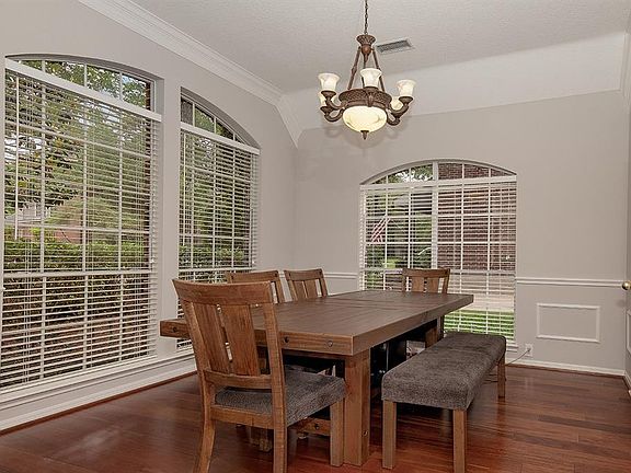 Fully remodeled David Weekley one story home in Cochran's Crossing! Zoned to award winning schools, close to parks, hike/bike trails, restaurants, shopping and many ways to get to I-45 and surrounding access roads. Brazilian cherry hardwood floors, fresh interior paint, lighted art niches, all LED lighting, graceful columns, crown moulding and detailed trim work throughout. The light and bright island kitchen with granite counters, built-in planning desk and stainless steel appliances opens to the breakfast room and den with gas log fireplace; formal dining with chair rail and French doors that lead to the kitchen; study could be 4th bedroom; master retreat has his & hers closets with built-ins and spacious master bath; 2 secondary bedrooms share a full bath; fenced yard has wood deck with built-in seating.