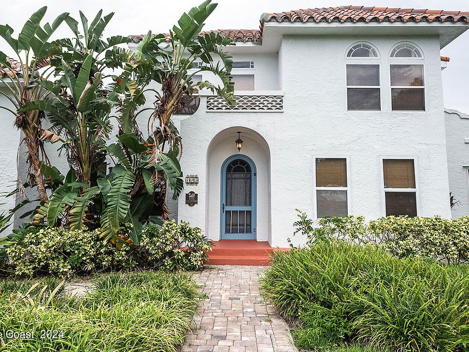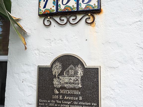 This home has a pedigree that has been meticulously documented by the City of Melbourne. It was built in 1925, at the height of the roaring twenties, by Fred Houghton and Oscar Elliot. The lavish architectural design followed the Mediterranean Revival style. Throughout the historic home you will see dark wood floors, wrought iron accents, white stucco and walls. Vaulted ceilings were not a common occurrence in the 1920's, however with no expense spared, luxury was accented throughout this marvelous property. The 4 bedroom, 2 bathroom home has a long history and is known as the ''Sea Lounge''. Upstairs are two bedrooms with a full bath and wonderful views. There are two additional bedrooms and a full bathroom on the main floor. The property has been well maintained through the last 100 years. The clay barrel tile roof was replaced in 2017, and the flat roof sections were sealed in 2024. The pool and spa were installed in 2007 with modern technology, all while following the historic style of the property. You must walk on the shell stone pavers to comprehend their beauty. The large property spralls across 0.57 acres, with an expansive lawn on the east section and fruit producing trees and tranquil garden on the west section. Come and see this piece of history in Brevard County.