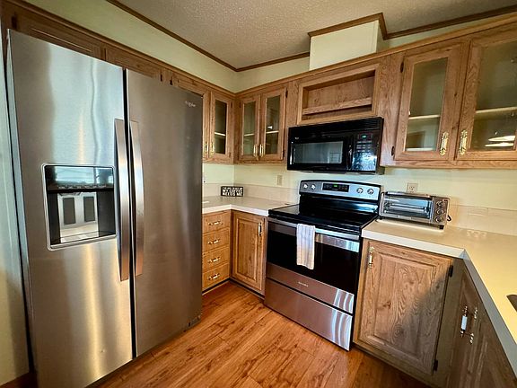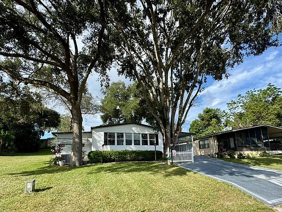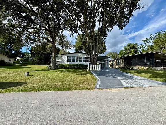 Located in Water Oak Country Club, Lady Lake, FL, an active 55+ manufactured home community. Just listed! 1991 Beautifully maintained 2 bedroom, 2 bathroom home being sold turn key with golf cart included! Kitchen has a breakfast area, newer refrigerator, microwave and stove. Home offers a separate dining room, great room, living room and a bright enclosed lanai. This is a great home for entertaining! Dryer and new washer included. Shed has a workshop space and lots of room for storage. Metal roof over in 2018. Long driveway and carport offer plenty of parking space. Home is located in a cul de sac, near the front entrance/ exit, golf course, restaurant, and main clubhouse. Don't miss out on this listing! Call to schedule your tour today! Lot rent includes land lease, 24 hour manned gate, lawn mowing and amenities except for golf. Amenities include an outdoor sports complex, 2 clubhouses, 2 pools, walking trails, dog parks, catch and release fishing, 24 hour fitness center and so much more!