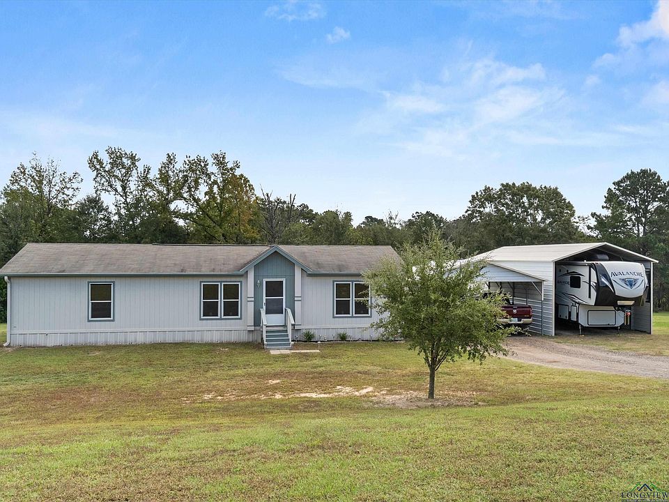 Well-Maintained 3BR/2BA Home on 1.04 Acres in New Diana ISD! This charming 1,268 square foot double wide mobile home offers 3 bedrooms, 2 full bathrooms, and plenty of outdoor features—all located in the desirable New Diana School District. Set on a spacious 1.04-acre lot, this well-kept property includes a 18' x 20' carport,18'x 34' RV cover, 12' x 24' storage building, and a large deck perfect for relaxing or entertaining. Enjoy summer days in the above-ground pool and quiet evenings in this peaceful country setting. Inside, you’ll find an open layout with a comfortable living area, functional kitchen/dining area, and a split-bedroom design for added privacy. The master suite features a walk in closet and its own private bathroom with a garden tub and walk in shower, with two additional bedrooms and a full bath that provide ample space for family or guests.