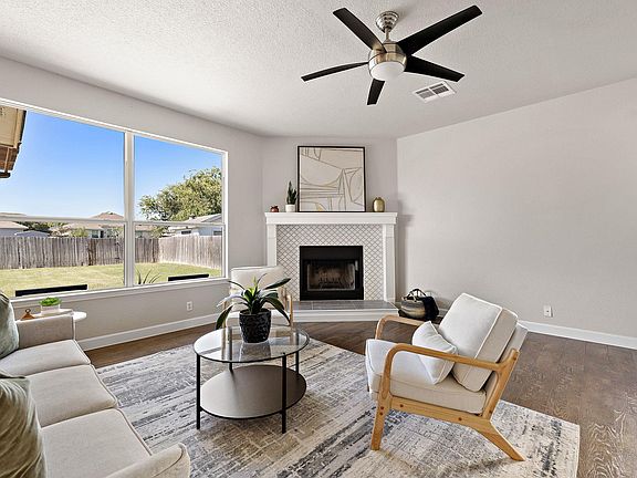 Welcome to 105 Edison! As you enter, you will notice a formal dining room or office space and a welcoming hallway that brings you to the kitchen and living room. The kitchen offers generous cabinet storage, abundant counter space, and a built-in wine rack adds a touch of charm. A large picture window overlooks the spacious backyard. The refrigerator conveys with the home. The living area feels open and bright, with large windows and a beautifully updated fireplace. Just off the living room, you’ll find a convenient powder bath and a storage closet tucked under the stairs. Upstairs there is a large flex space, perfect for a game room, media room, or multipurpose spot. The primary bedroom is spacious, it features a large walk-in closet, a soaking tub, separate shower, and dual sinks. The shower includes a new Moen shower head and faucet control handle. Three additional bedrooms upstairs provide plenty of space, each with ample closet storage. The secondary bathroom has a refinished tub and a new shower head, both completed in October 2025. Outside, enjoy the Texas evenings under the gazebo on the extended patio, surrounded by a generous backyard with room to entertain, barbecue, or garden. The garage has been well maintained, featuring a recent concrete flooring upgrade and freshly repainted walls (October 2025). The home also received interior and exterior paint touch-ups throughout, including walls, baseboards, lower cabinets, exterior trim and more (October 2025) and the roof was replaced in 2023. The home is located just minutes from charming downtown Hutto restaurants and coffee shops, as well as major chain retailers and grocery stores. The location is walkable to the elementary and high school, and just a short 5 minute commute to the middle school. Hutto is a few minutes away from the Samsung campus, under 30 minutes to the Domain area, and under 45 minutes to downtown Austin.