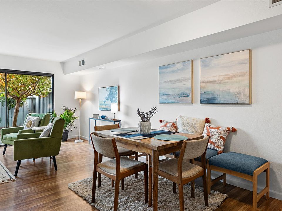 Move-in ready for the holidays!! Discover effortless living with stunning views at Cloverdale Meadows. This upgraded 2-bedroom, 1.5-bath condo offers a serene lifestyle with its private, fenced patio backing onto a quiet grassy area. Location ensures no directly shared bedroom walls for added privacy. Enjoy the convenience of being just blocks from essential amenities like Ray's, Redwood Credit Union, and CVS, along with local dining options including pizza, Thai cuisine, and fresh donuts:) Embrace a car-free lifestyle with nearby Cloverdale bus access. Nature enthusiasts will appreciate the proximity to Furber Park, Muscat Creek for scenic walks, and Yorty Creek Recreation Area - perfect for biking and outdoor adventures. The community's monthly HOA fee of $487 covers pool and exterior maintenance, fencing, roofing, and trash, providing peace of mind and hassle-free living. Additional interior rentable storage is available in the community area for a small additional fee. The home includes convenient carport parking in the front, with an extra dedicated spot by the pool. two guest spots are right in front - additional parking on Elbridge as well. An ideal choice for those seeking a vibrant yet tranquil living environment.