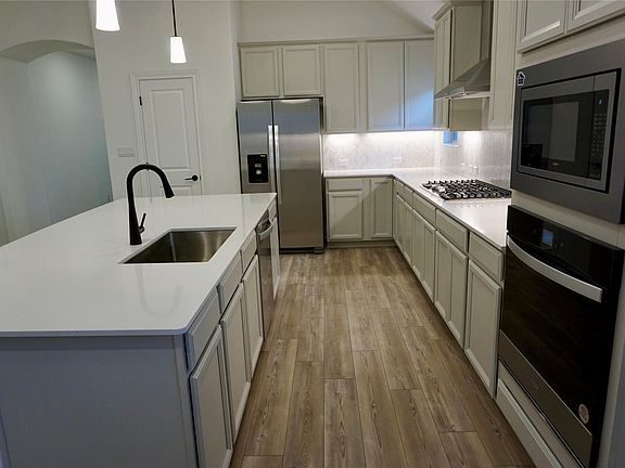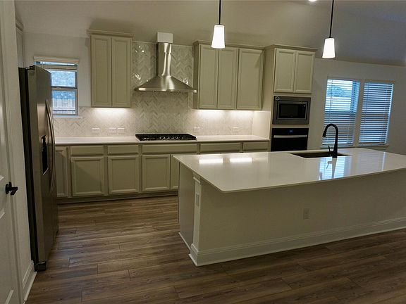 Amazing opportunity - 2 year old rental home with unbeatable storage, packed with upgrades like stainless steel appliances, mini blinds, wood look tile, select hard ware upgrades, spacious yard with covered back porch. Hill Country view in oversized, fenced in backyard, with premier live oak in side yard w/ garage access. 3 car garage, double pantry, double entry closets, double primary closets (his/hers). Accommodating layout, with open kitchen/dining/living with 5 seats at the center island, under cabinet lighting, and upgrades galore. Large primary with double sink and walk in shower with tub and 2 closets, w/ linen closet. Front bedroom is ensuite with full bathroom and walk in closet, mother-in-law style. The other two bedrooms are centrally located, by the other full bathroom with double vanity, deep closet and laundry area. All appliances included. Accommodating owner. Neighborhood has pool, trails, and closes access to HEB, Bar-w shopping, 183a, the Northline Project, 29, 2243, and i35 on the east. 40 mins to downtown and airport.