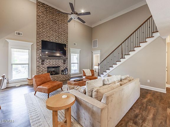 This almost new home offers 5 bedrooms or 4 bedrooms and a rec. room. Open floor plan with a large kitchen island with island seating. All the way up brick fireplace. Formal dining room and informal/breakfast area. Gas stove and all stainless steel appliances stay. Walk in pantry. Your primary bedroom offers a large walk in closet that continues to your laundry room. So convenient! Your laundry room has access as soon as you walk in from the garage..as well as a half bath. Your upstairs offers an overlook of the main floor with a balcony view. Walk in attic. You have a covered back porch with a tranquil sitting area. Front porch offers covered sitting area as well. Your home is located on the corner of a cove road. Must see this homey home in person. All information is deemed to be correct, but not guaranteed by seller, realtor, or real estate company. A certified home inspection and appraisal are recommended for accuracy.