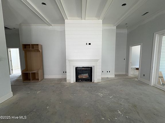 Crown moldingFrameless glass shower doorKitchen and dining areaUpgraded interior lighting packageBench with hooksWhite wood shelvingOpen concept great room