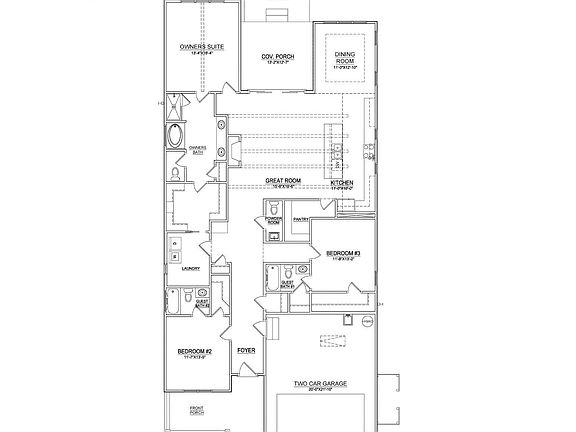 The beautiful Beckett Home Plan in the Traditional Elevation is a spacious 2223 square feet all on one story. Three bedrooms all with an ensuite bath, a powder room for guests and room for entertaining in the open concept great room, kitchen and dining area. Upgrades to this home include crown molding in main living areas, exposed painted beams in great room, white wood shelving in owners closet and pantry, 8'0 center meet sliding door from great room to covered porch, bench with hooks in foyer, upgraded tile in baths, drop in tub with tile surround in owners bathroom, frameless glass shower door in owners bath and upgraded interior lighting package.