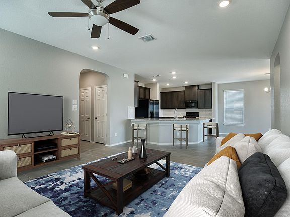 Welcome to this beautiful single-story home in the highly sought-after Star Ranch Golf Course Community. With three bedrooms, two full baths, and an open-concept layout, this home offers both comfort and style. The spacious kitchen is a chef's dream, featuring a massive granite peninsula, abundant cabinetry, and sleek black stainless steel appliances, with the refrigerator included. The living and dining areas flow seamlessly together, making it the perfect space for everyday living or entertaining. Your private primary retreat includes a generous walk-in closet, large windows with serene green space views, and a en-suite with an oversized shower and double vanity. Two additional bedrooms provide flexibility for family, guests, or a home office. Step outside to the covered patio, ideal for enjoying morning coffee or evening relaxation while taking in peaceful views of the surrounding green space. Throughout the home, you'll also find plenty of storage to keep everything neatly organized. This home offers unmatched convenience with quick access to major destinations. It is just two minutes from HEB and the 130 Toll Road, providing a short commute to downtown Austin, the airport, and all major tech employers. The location also places you only 15 minutes from the new Samsung plant in Taylor and 10 minutes from Stonehill Shopping Center. Combining modern comfort, unbeatable convenience, and breathtaking views, this home is truly a must-see in Star Ranch.