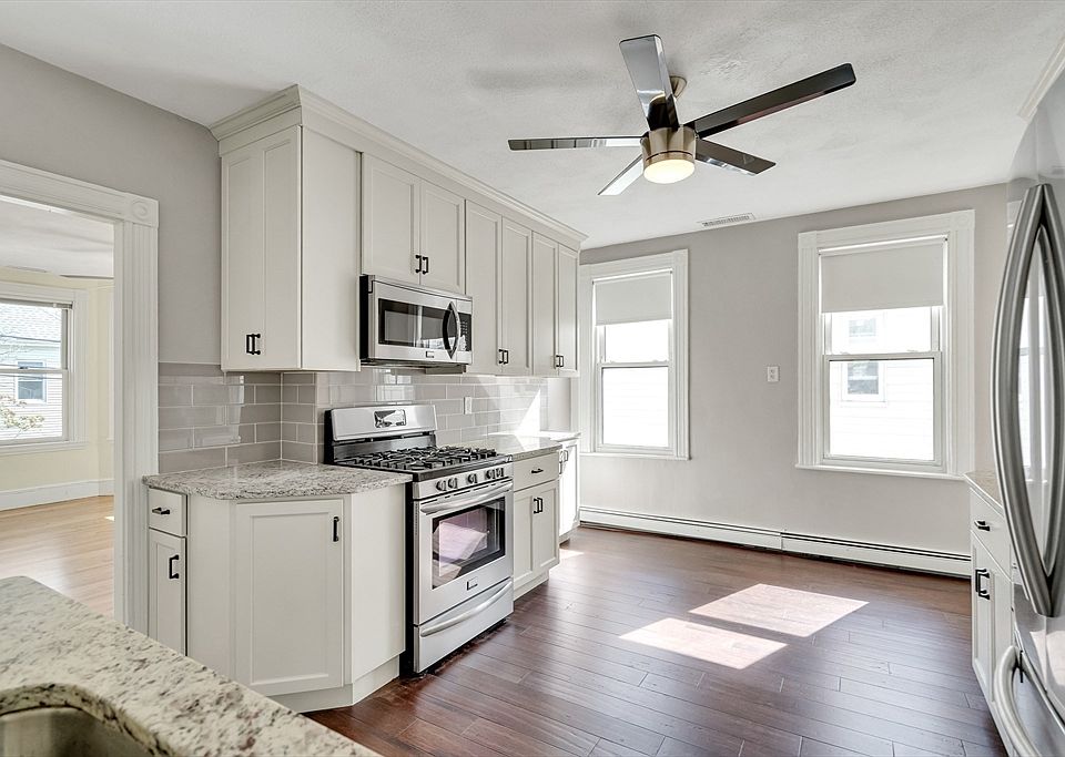 Set on the top floor of a quiet Brookline street, this 2+ bed condo has hardwood floors throughout the unit. The two bedrooms are about equal size each with 2 windows. There is sunlight from windows on 4 sides so you experience all day sun. The bonus room provides space for a nursery or office. The unit features high ceilings and loads of character. The eat in kitchen is upgraded with granite counters and stainless steel appliances. You'll love the central AC for hot summer days. Two deeded parking spots, basement laundry with private machines and dedicated storage in addition to the storage closets inside of the unit. The heating and cooling systems were recently updated. Pet-friendly and close to Olmsted Park, Emerald Necklace trails and Jamaica Pond. Enjoy nearby Brookline Village shops & restaurants, with MBTA access via Brookline Hills Green Line & Route 60 bus. Some photos are virtually staged