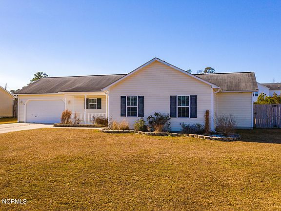 The Good Life begins at home in this 3 BR, 2-bath ranch-style house, in a quiet street setting, on nearly 1/3 acre lot in the Quail Roost neighborhood of Hubert. Enter this home through a small foyer and into a generous area that accommodates the kitchen, dining & family room. The comfy, casual living room is a perfect spot for relaxing, and a cosy wood-burning fireplace in the provides warmth in the wintertime. The home also features a cheery kitchen with ample cabinetry, comfortably-sized bedrooms including a master bedroom with ensuite and walk-in closet. Outside there is a covered-front porch that is rocking-chair ready and a back patio perfect for grilling out. The back yard is fenced-in and a double-car garage completes the picture. The sellers are including a $10,000 upgrade allowance at closing! Arrange to take a closer look. Offered at $238,000