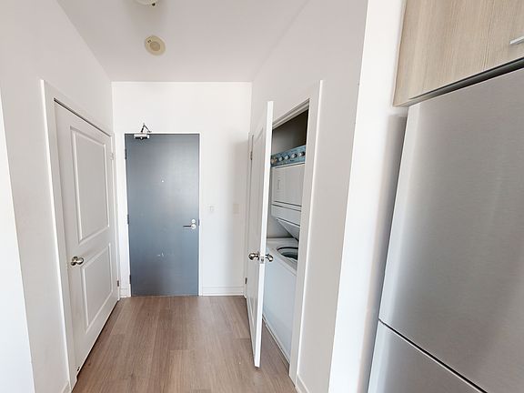 Discover this modern 1-bedroom lower penthouse in the Post House Condos, nestled in Toronto's vibrant St. Lawrence Market area. Ideal for professionals or couples, it offers a bright vibe with 10-foot ceilings, exclusive to lower penthouse units. A walk-in closet and smart layout maximize space, while an oversized balcony boasts north city views. Enjoy an updated kitchen with stainless steel appliances and quartz countertop, a modern bathroom with sleek finishes, plus hardwood floors and in-unit laundry. Adjacent to heritage buildings with access to a quiet courtyard, it's a peaceful urban retreat.