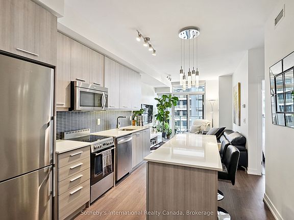 Live in Style at Post House Condos Downtown Living Made Easy. Welcome to this thoughtfully designed1-bedroom suite at Post House Condos, offering 543 square feet of sleek, modern living plus a spacious105-square-foot balcony for enjoying the rhythm of the city. The open-concept layout is finished with clean lines and a contemporary edge, while floor-to-ceiling windows frame your space. The modern kitchen offers stainless steel appliances, quartz countertops and a large island for ample countertop space and a spot for casual dining. The bedroom features a custom walk-in closet for smart storage, and every inch of the unit is designed with function and comfort in mind. A sleek 4-pc bathroom and in-suite laundry complete the space. Exceptional layout where the bedroom and bathroom entries are secluded from the living spaces by a stylish vestibule. One locker is also included for added convenience. Rental parking spot available. Residents enjoy access to a full range of amenities: 24-hourconcierge, gym, yoga studio, theatre room, sauna, two party lounges, guest suites, visitor parking, and a large outdoor patio with BBQs perfect for when friends drop by. Just steps to the St. Lawrence Market, the Financial District, transit, restaurants, parks, and George Brown College, this is a connected, convenient location to call home.