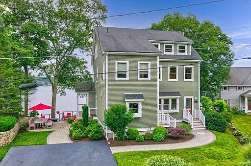 Amazing waterfront property on Lake Pearl! Boating, swimming & fishing right from your own private dock. Over 4,000 sq ft of living on 4 floors in excellent condition. Open floor plan with water views from almost every room. 1st floor has gourmet kitchen with all GE monogram appliances including 48" GAS stove & vented hood, custom cabinets w/ peninsula breakfast bar & butcher block center island, open to a huge dining room and family room with 9' wood ceilings all with fabulous views of the lake. 2nd floor features a primary bedroom suite with water views, cedar walk-in closet, full bath with whirlpool tub and his and her vanities, 2nd good-sized bedroom with water view, Office/guest room with 2 double closets and a full bath. 3rd floor has huge great room/game room w/wet bar & another full bath. Outside features great entertainment space with multiple patios, a 40' dock & an 8' dock for paddle boards or kayaks. Convenient to highways, town & commuter rail!