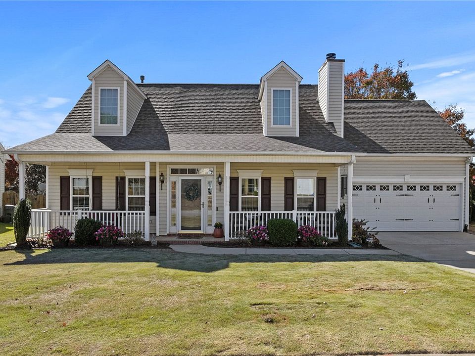 Welcome home to this meticulously maintained, move-in ready 4-bedroom, 2.5-bathroom residence. A charming rocking chair front porch greets you. Inside, a two-story vaulted living room with a gas log fireplace seamlessly connects to the dining room and eat-in kitchen, all featuring gleaming hardwood floors on the main level.