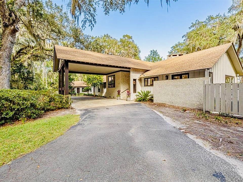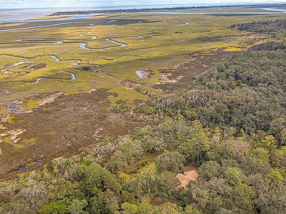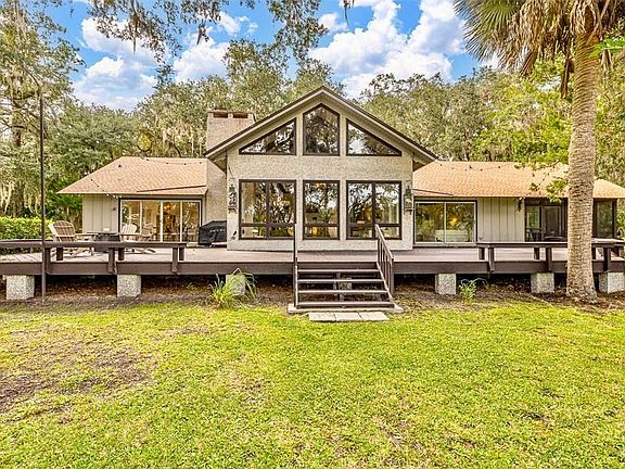 This stunning estate is encircled and insulated by a vast nature preserve owned by the Saint Simons Land Trust. This 1+acre property is situated at the end of a quarter mile private drive shared by only one other home! This retreat-like property offers incomparable privacy and magnificent views of surrounding nature and wildlife. Designed by Lamar Webb, the home features exquisite pecky cypress walls and pegged oak wood floors, demonstrating warmth and sophistication. The open floorplan allows for seamless flow between rooms, including a captivating great room boasting a vaulted cathedral ceiling with beautiful beams and two tabby fireplaces. This property is full of natural light, thanks to an abundance of large windows, and the wrap-around deck invites you to breathe in the fresh air and immerse yourself in gratitude for the surrounding beauty. With two bedrooms and a loft that can serve as a bedroom or an office, this house offers versatility to fit your needs. Keep this peaceful treasure to yourself or consider sharing this special property with others; current FA zoning offers alternate permitted uses such as private or semi-private club, social center, religious, philanthropic institution or camp. Don’t miss this incredibly rare find!