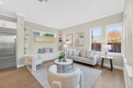 Custom kitchenOversized islandSleek cabinetryOpen-concept layoutFull backsplashPrimary suiteEngineered and hardwood floors
