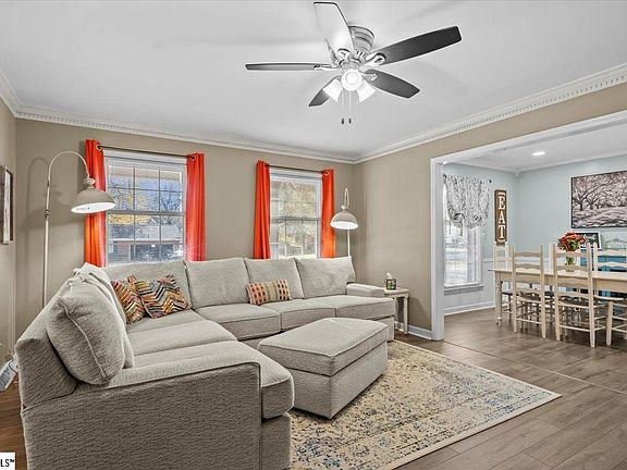 Welcome to POINSETTIA, in the heart of ever-popular Simpsonville, where your new home can be just a WALK away from our quaint little “downtown”! Just a 15-minute walk to the playgrounds at Gracley Park and just ONE mile from shopping, restaurants, entertainment, and ICE CREAM! But first, let’s check off those boxes: *NO HOA *PRIME LOCATION. * UPDATED ALL BRICK RANCH *1/2 ACRE LOT *ESTABLISHED WALKABLE NEIGHBORHOOD *FENCED YARD. *1 YEAR OLD ROOF *FIREPLACE *MOVE IN READY *SCREENED-IN PORCH *CURB APPEAL *HIS & HERS OUTBUILDINGS W/ POWER (But wait, there’s more!) This 2338 sf, three bedroom, two bath home has been beautifully maintained and updated. Enjoy the open kitchen with newer appliances, quartz countertops, and a potential wine bar or coffee bar! (Which do YOU prefer?) How about a dedicated office to work from home? You’ll love this one: behind the sliding doors, a bright, private space with a wall full of windows is the perfect place to focus. Wait until you see the high-end primary bathroom with the jetted, bluetooth-touchscreen- lighted soaker tub, the beautifully designed walk-in shower, his & hers LED mirrors and even a heated towel bar! The classic dental moulding offers character, while the luxury vinyl plank flooring adds freshness to the neutral decor inside. Whether you’re gathering around the brick fireplace, spending quiet time in the sunroom, or enjoying the expansive backyard from the screened-in porch or covered deck, you’ll appreciate this gem and all that it has to offer! Outside, the “She-Shed” is just for her, while the adjacent larger workshop is for the handyman of the house - and both buildings have power! An oversized driveway and large fenced-in yard provide plenty of space for additional outdoor storage. This home combines character and charm with stylish updates to make this one the perfect blend of WARMTH and SOPHISTICATION. Come by and see what sets this property apart, and prepare to want to call it “HOME”.